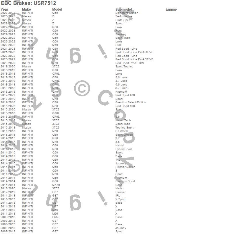 Below is an abreviated list of applications for the EBC USR Series Sport Slotted Rotor.