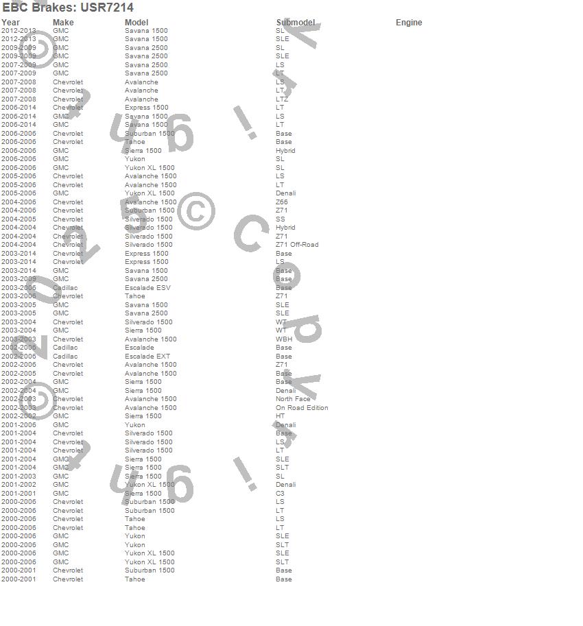 Below is an abreviated list of applications for the EBC USR Series Sport Slotted Rotor.