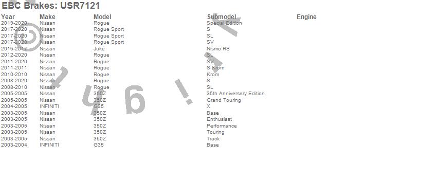 Below is an abreviated list of applications for the EBC USR Series Sport Slotted Rotor.