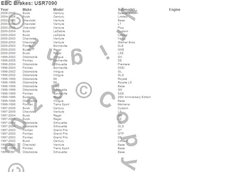 Below is an abreviated list of applications for the EBC USR Series Sport Slotted Rotor.