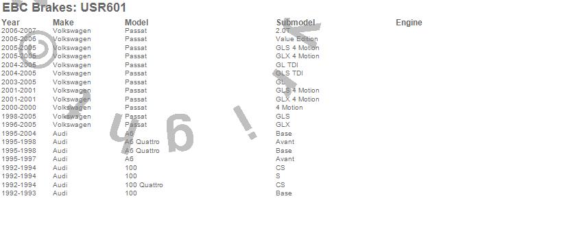 Below is an abreviated list of applications for the EBC USR Series Sport Slotted Rotor.
