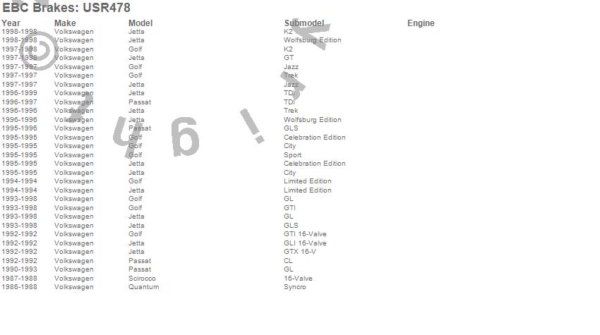 Below is an abreviated list of applications for the EBC USR Series Sport Slotted Rotor.