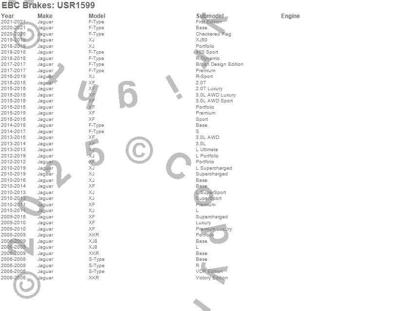 Below is an abreviated list of applications for the EBC USR Series Sport Slotted Rotor.