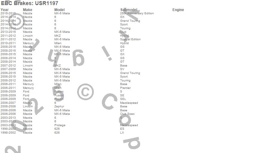Below is an abreviated list of applications for the EBC USR Series Sport Slotted Rotor.