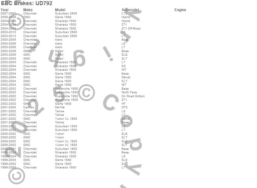 Below is an abreviated list of applications for the EBC Ultimax OEM Replacement Brake Pads.