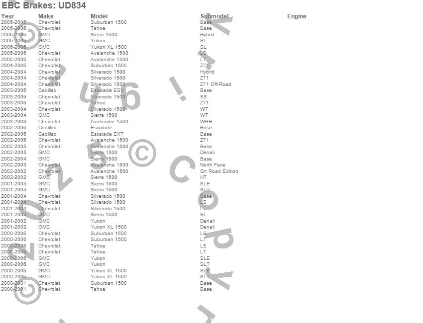 Below is an abreviated list of applications for the EBC Ultimax OEM Replacement Brake Pads.