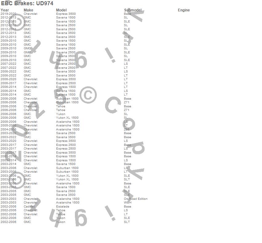 Below is an abreviated list of applications for the EBC Ultimax OEM Replacement Brake Pads.