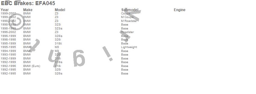 Below is an abreviated list of applications for the EBC Brake Wear Lead Sensor Kit. 318i, 318is, 318ti, 320i, 323iC, 323is, 325i, 325is, 328i, 328is, M3, Z3, BMW, BMW (Euro), 2002, 2001, 2000, 1999, 1998, 1997 more…