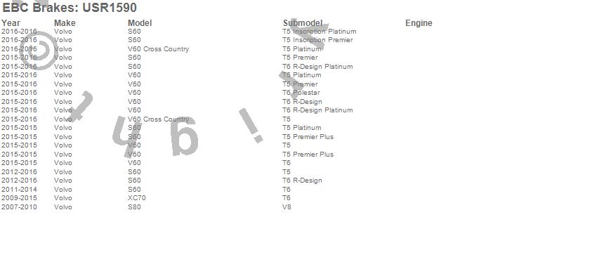 Below is an abreviated list of applications for the EBC USR Series Sport Slotted Rotor.