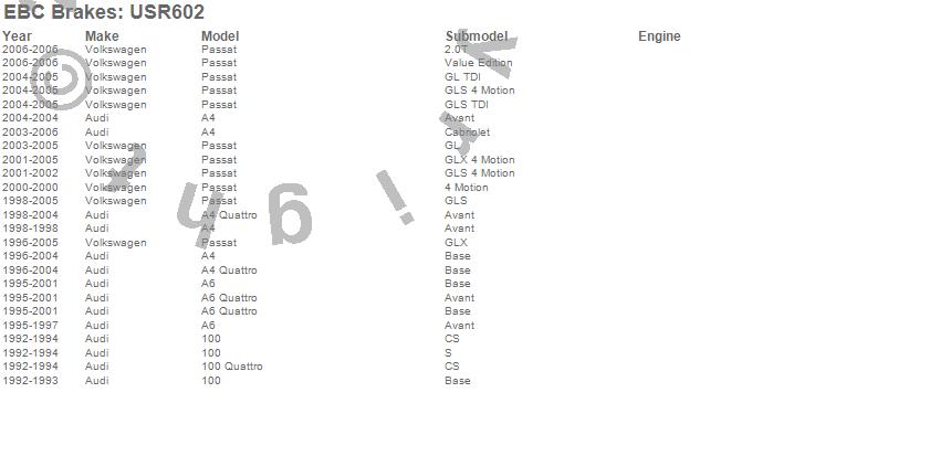 Below is an abreviated list of applications for the EBC USR Series Sport Slotted Rotor.