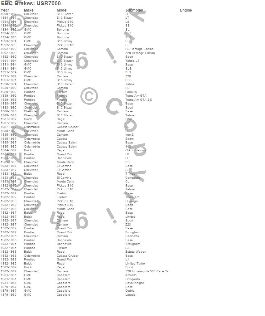 Below is an abreviated list of applications for the EBC USR Series Sport Slotted Rotor.