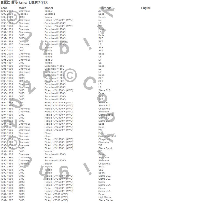 Below is an abreviated list of applications for the EBC USR Series Sport Slotted Rotor.