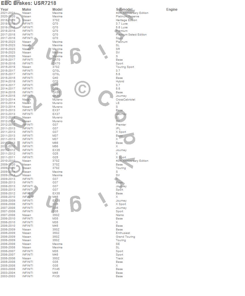 Below is an abreviated list of applications for the EBC USR Series Sport Slotted Rotor.