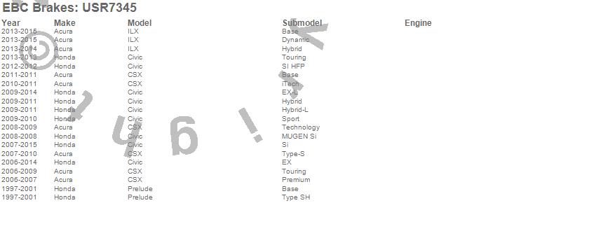 Below is an abreviated list of applications for the EBC USR Series Sport Slotted Rotor.