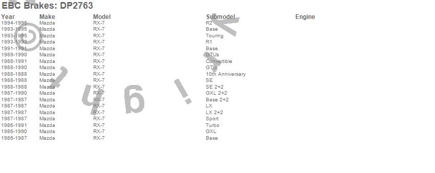 Below is an abreviated list of applications for the EBC Greenstuff 2000 Series Sport Brake Pads.