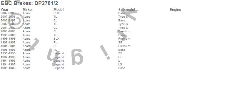 Below is an abreviated list of applications for the EBC Greenstuff 2000 Series Sport Brake Pads.
