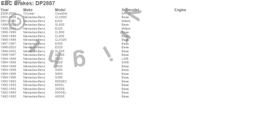 Below is an abreviated list of applications for the EBC Greenstuff 2000 Series Sport Brake Pads.