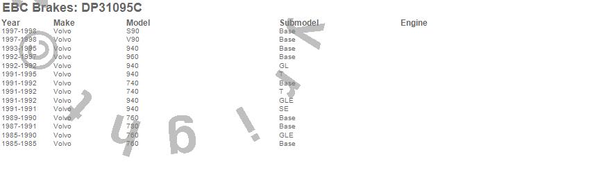 Below is an abreviated list of applications for the EBC Redstuff Ceramic Low Dust Brake Pads. 740, 760, 780, 940, 960, S90, V90, Volvo, 1998, 1997, 1996, 1995, 1994, 1993, 1992, 1991, 1990, 1989, 1988, 1987 more...