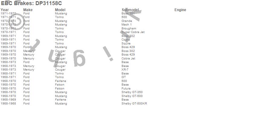 Below is an abreviated list of applications for the EBC Redstuff Ceramic Low Dust Brake Pads.