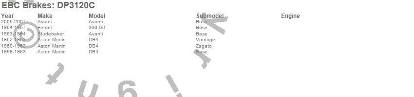 Below is an abreviated list of applications for the EBC Redstuff Ceramic Low Dust Brake Pads. 330 GT, Avanti, DB4, Aston Martin, Avanti, Ferrari, Studebaker, 2007, 2006, 2005, 1967, 1966, 1965, 1964, 1963, 1962, 1961, 1960, 1959 more...
