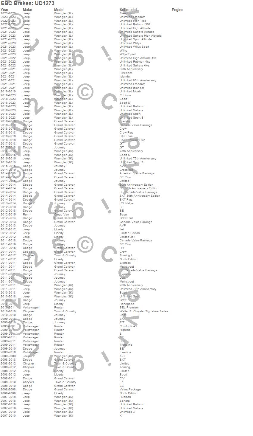 Below is an abreviated list of applications for the EBC Ultimax OEM Replacement Brake Pads.