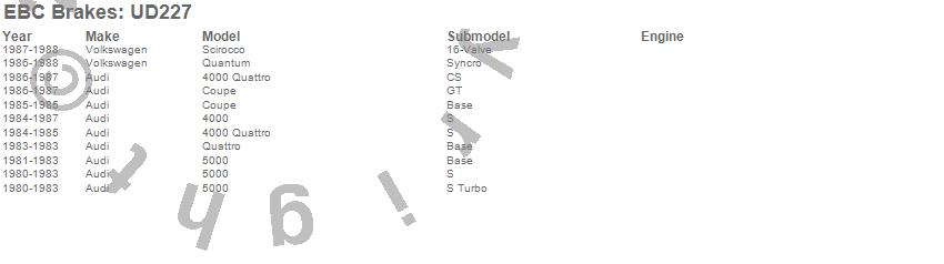 Below is an abreviated list of applications for the EBC Ultimax OEM Replacement Brake Pads. 4000, 4000 Quattro, 5000, Coupe, Quantum, Quattro, Scirocco, Audi, Volkswagen, 1988, 1987, 1986, 1985, 1984, 1983, 1982, 1981, 1980 more…