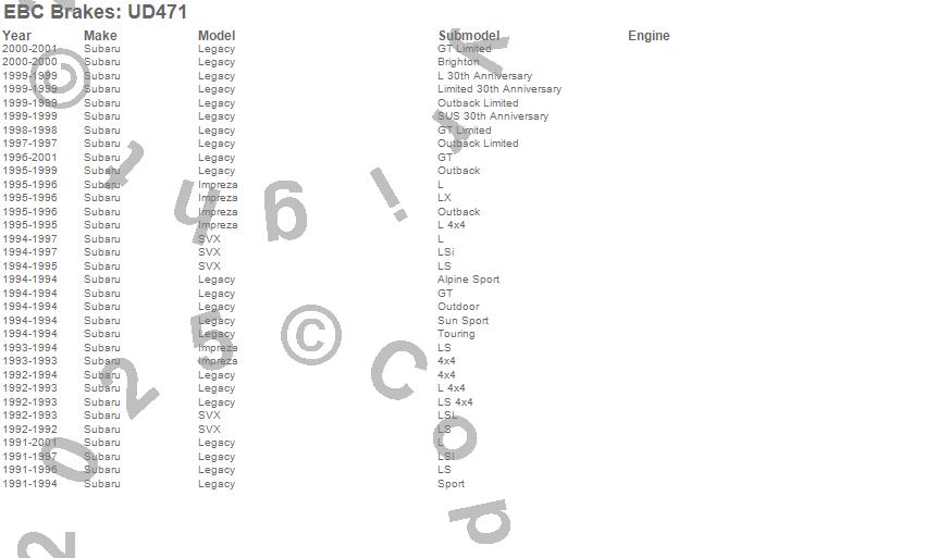 Below is an abreviated list of applications for the EBC Ultimax OEM Replacement Brake Pads.