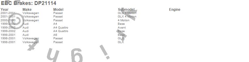 Below is an abreviated list of applications for the EBC Greenstuff 2000 Series Sport Brake Pads.