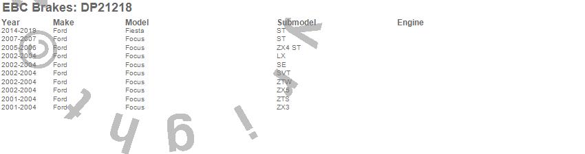 Below is an abreviated list of applications for the EBC Greenstuff 2000 Series Sport Brake Pads.
