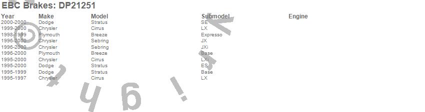 Below is an abreviated list of applications for the EBC Greenstuff 2000 Series Sport Brake Pads.