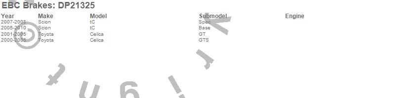 Below is an abreviated list of applications for the EBC Greenstuff 2000 Series Sport Brake Pads.