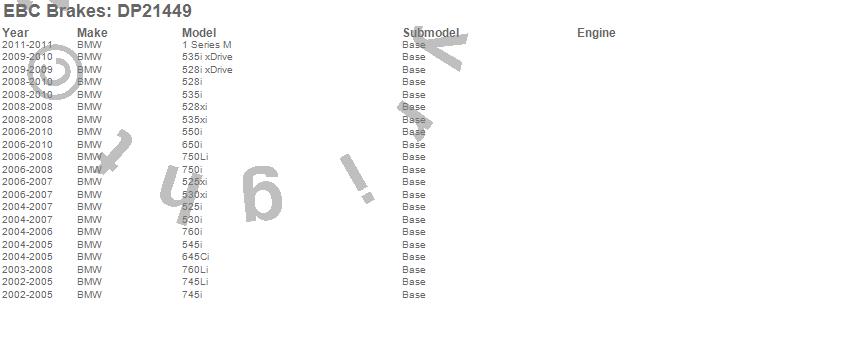 Below is an abreviated list of applications for the EBC Greenstuff 2000 Series Sport Brake Pads.