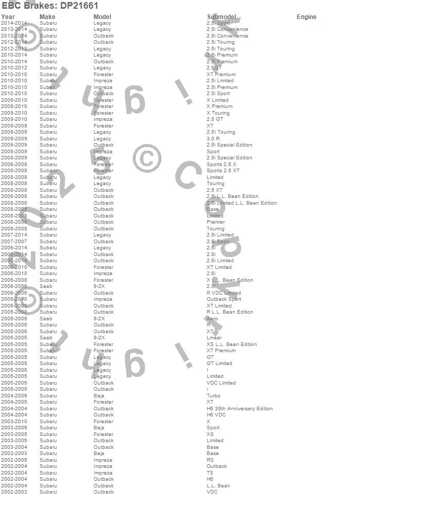 Below is an abreviated list of applications for the EBC Greenstuff 2000 Series Sport Brake Pads.