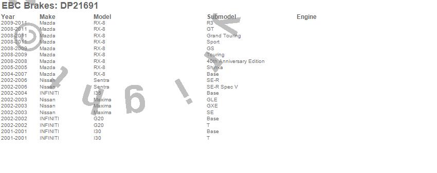 Below is an abreviated list of applications for the EBC Greenstuff 2000 Series Sport Brake Pads.