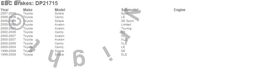 Below is an abreviated list of applications for the EBC Greenstuff 2000 Series Sport Brake Pads.