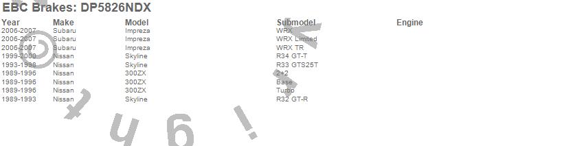 Below is an abreviated list of applications for the EBC Bluestuff NDX Full Race Brake Pads.