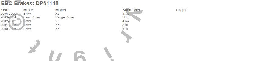 Below is an abreviated list of applications for the EBC 6000 Series Greenstuff Truck/SUV Brakes Disc Pads.