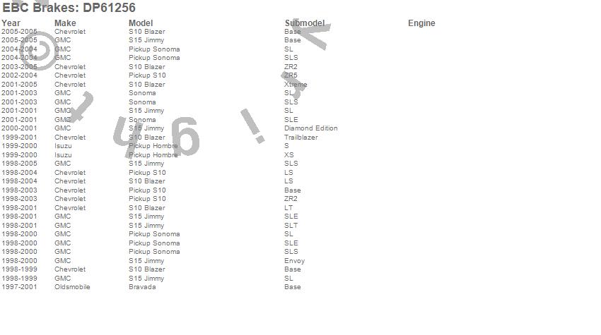 Below is an abreviated list of applications for the EBC 6000 Series Greenstuff Truck/SUV Brakes Disc Pads.