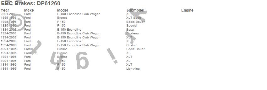 Below is an abreviated list of applications for the EBC 6000 Series Greenstuff Truck/SUV Brakes Disc Pads.