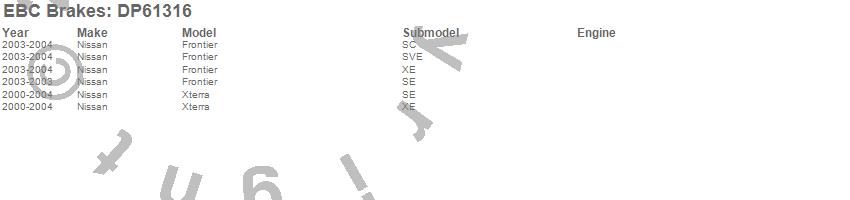 Below is an abreviated list of applications for the EBC 6000 Series Greenstuff Truck/SUV Brakes Disc Pads.
