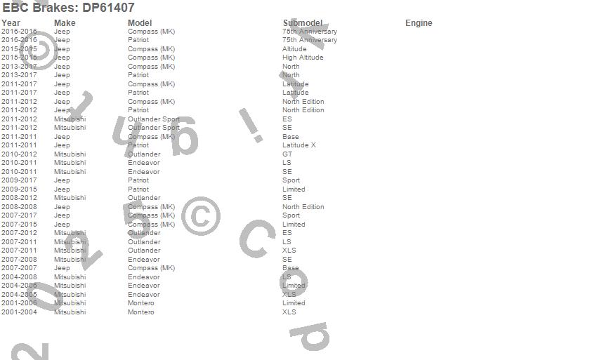 Below is an abreviated list of applications for the EBC 6000 Series Greenstuff Truck/SUV Brakes Disc Pads.