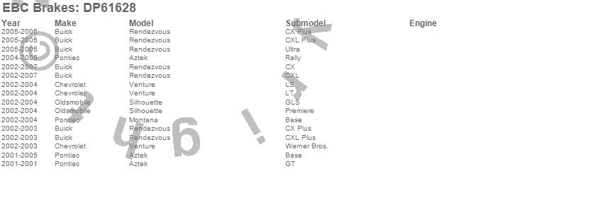 Below is an abreviated list of applications for the EBC 6000 Series Greenstuff Truck/SUV Brakes Disc Pads.