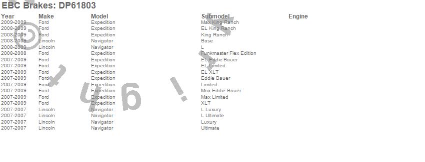 Below is an abreviated list of applications for the EBC 6000 Series Greenstuff Truck/SUV Brakes Disc Pads.