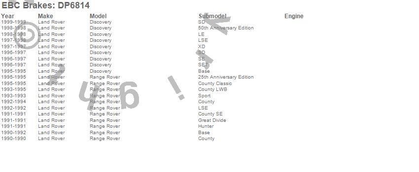 Below is an abreviated list of applications for the EBC 6000 Series Greenstuff Truck/SUV Brakes Disc Pads.