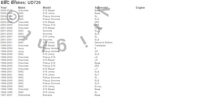 Below is an abreviated list of applications for the EBC Ultimax OEM Replacement Brake Pads.