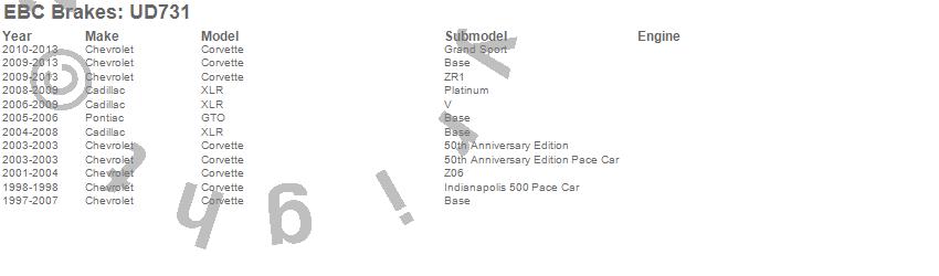 Below is an abreviated list of applications for the EBC Ultimax OEM Replacement Brake Pads. Corvette, GTO, XLR, Cadillac, Chevrolet, Pontiac, 2013, 2012, 2011, 2010, 2009, 2008, 2007, 2006, 2005, 2004, 2003, 2002, 2001, 2000 more…