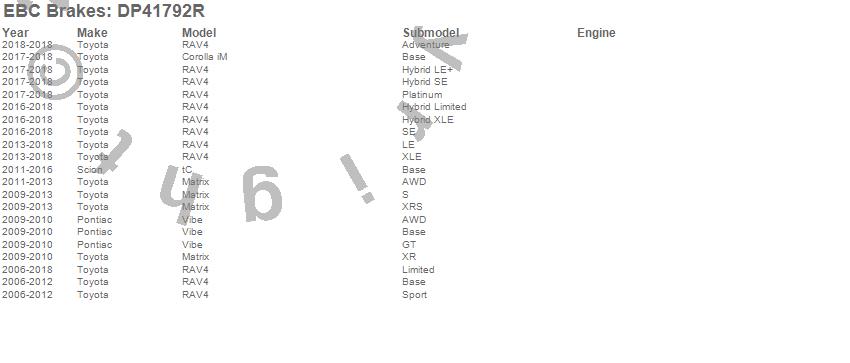 Below is an abreviated list of applications for the Yellowstuff Street And Track Brake Pads. Matrix, RAV4, tC, Vibe, Pontiac, Scion, Toyota, 2016, 2015, 2014, 2013, 2012, 2011, 2010, 2009, 2008, 2007, 2006 more…