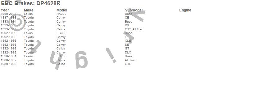 Below is an abreviated list of applications for the Yellowstuff Street And Track Brake Pads. Camry, Celica, ES250, ES300, RX300, Lexus, Toyota, 2003, 2002, 2001, 2000, 1999, 1998, 1997, 1996, 1995, 1994, 1993, 1992, 1991 more…