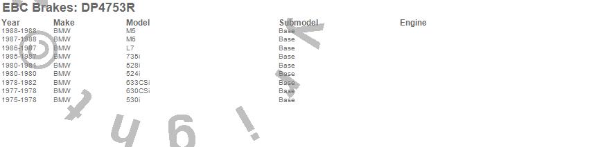 Below is an abreviated list of applications for the Yellowstuff Street And Track Brake Pads. 528i, 530i, 630CSi, 633CSi, 735i, L7, M5, M6, BMW, 1988, 1987, 1986, 1985, 1982, 1981, 1980, 1979, 1978, 1977, 1976 more…