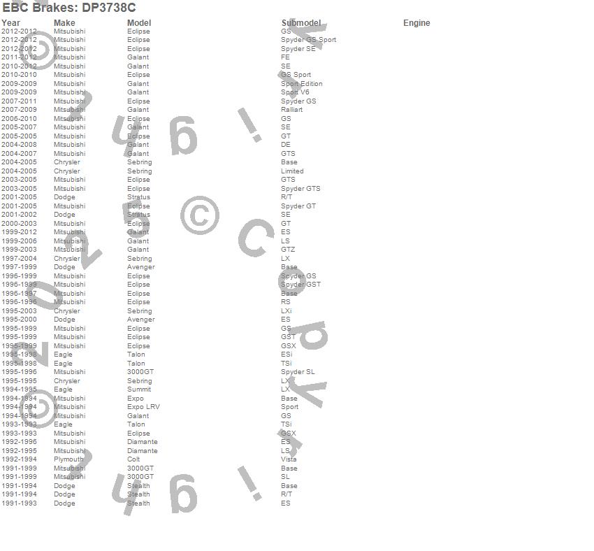3000GT, Avenger, Colt, Diamante, Eclipse, Expo, Expo LRV, Galant, Sebring, Stealth, Stratus, Summit, Talon, Chrysler, Dodge, Eagle, Mitsubishi, Plymouth, 2012, 2011 more…